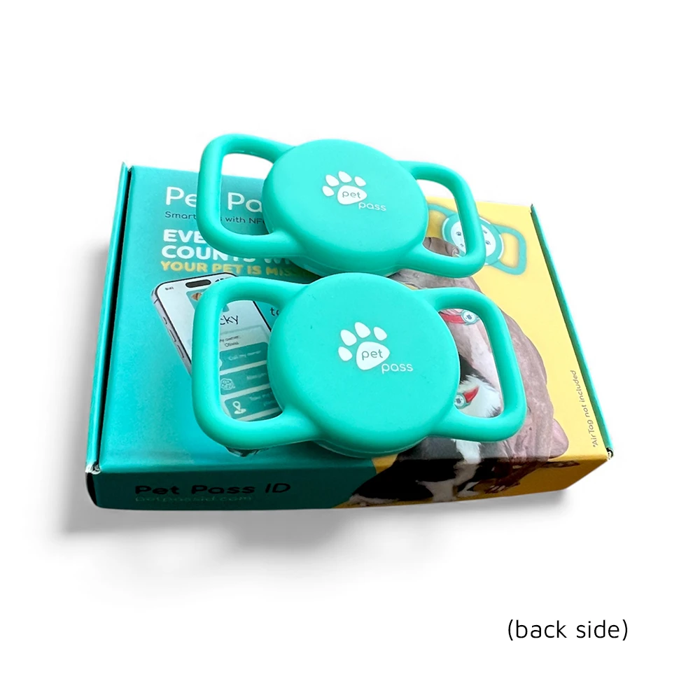 The package (box) contains 2 pcs of Pet Pass ID - Smart Tag with AirTag Slot.